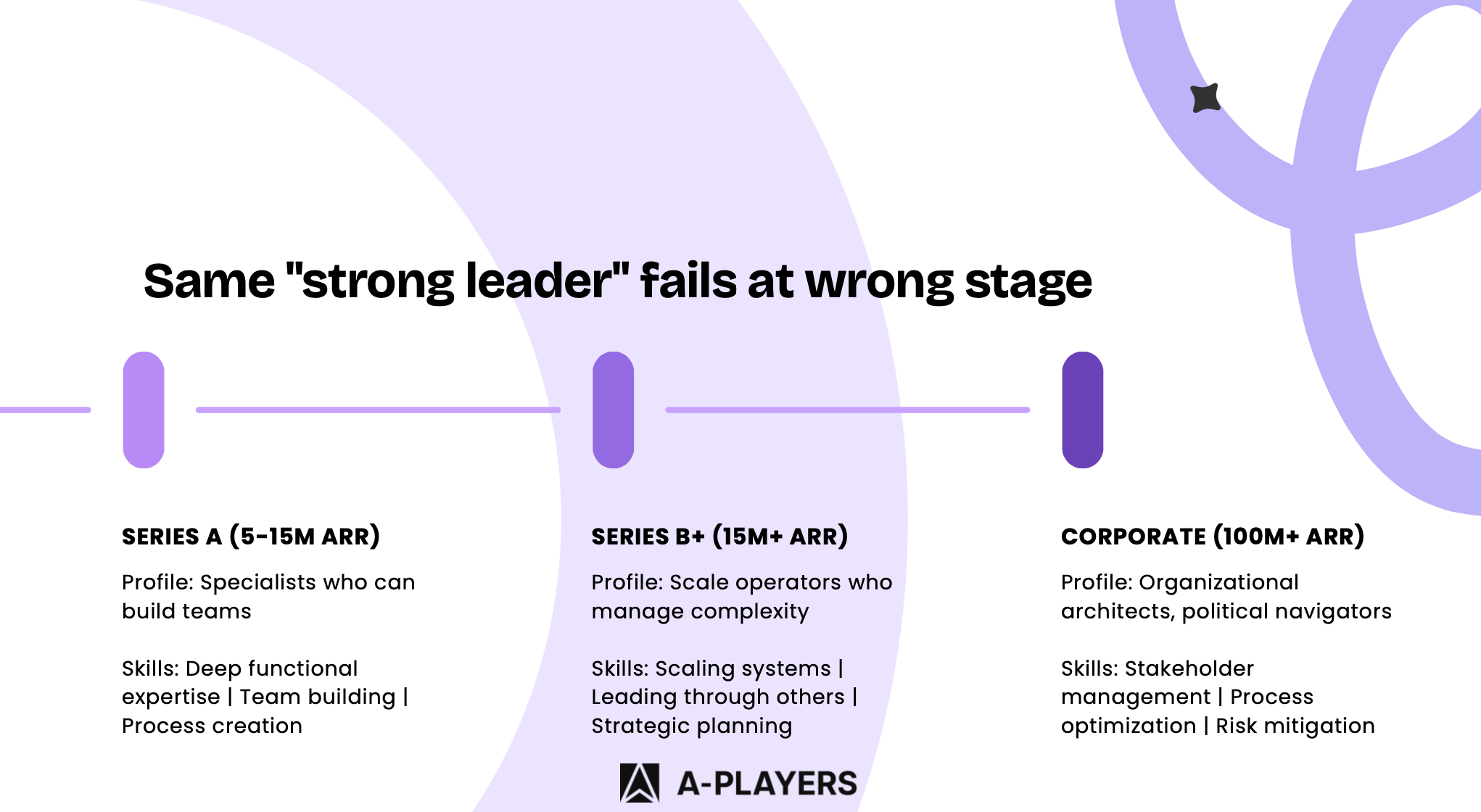 Приклад Head of Sales на Series A: людина сама закриває перші 10–20 угод, щоб зрозуміти sales motion. Якщо прийти на Series A з позицією «дайте мені команду, я буду управляти» — це ще не спрацює. Все одно потрібно пройти шлях самостійно й лише потім будувати структуру.