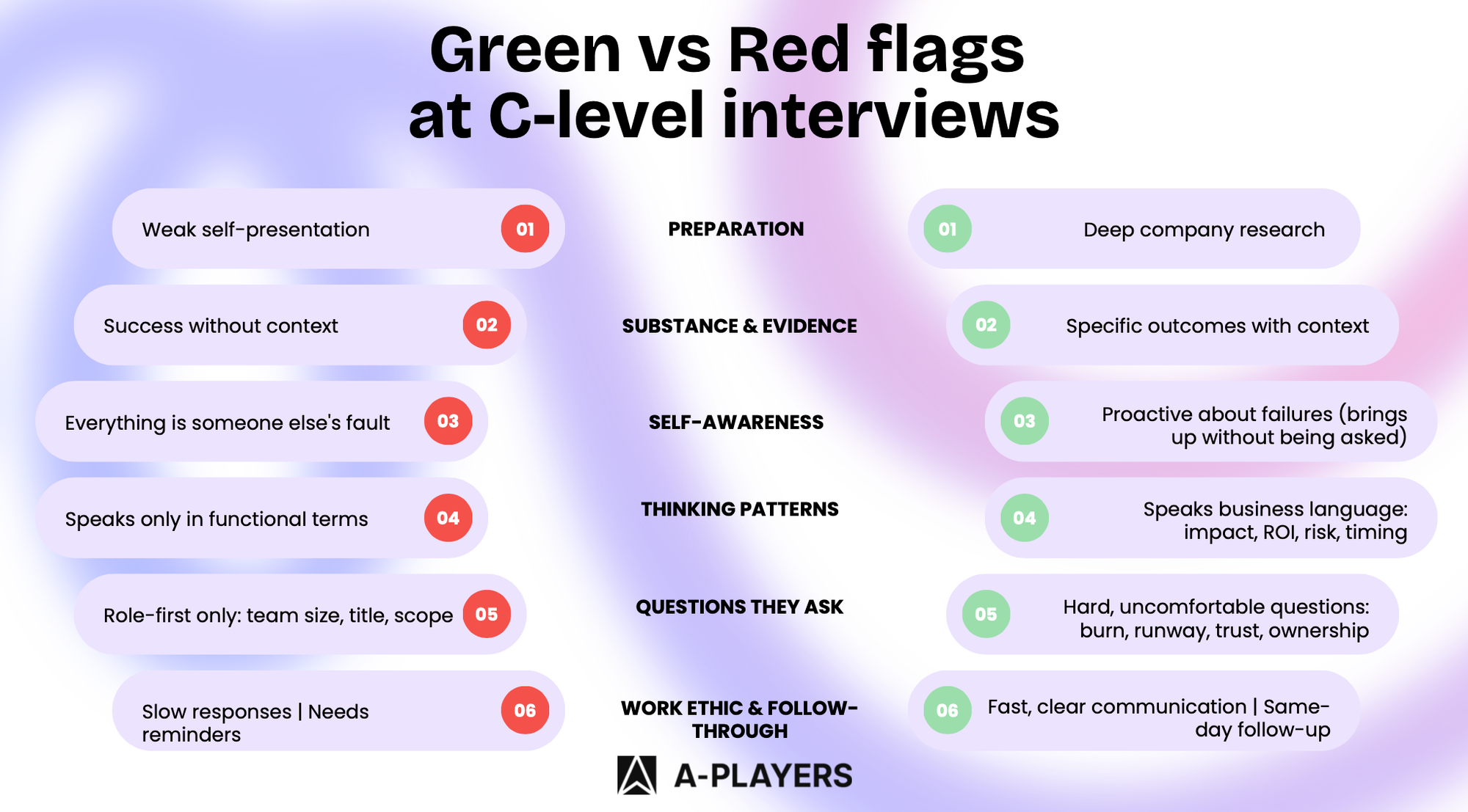 Для фаундерів — критично бути відвертими щодо очікувань від ролі. Не припускати, що C-level «і так усе знає». Найм на цьому рівні — ризик, і його потрібно усвідомлено закладати.