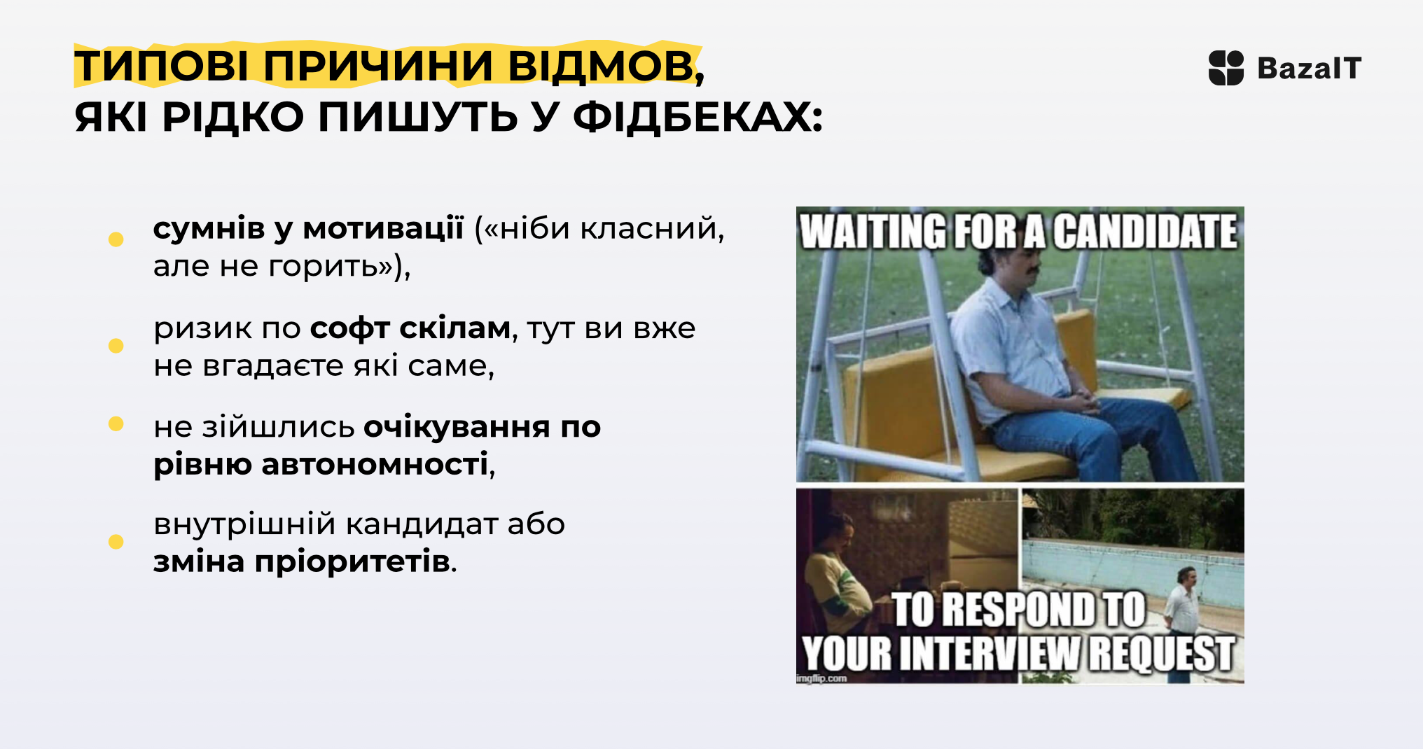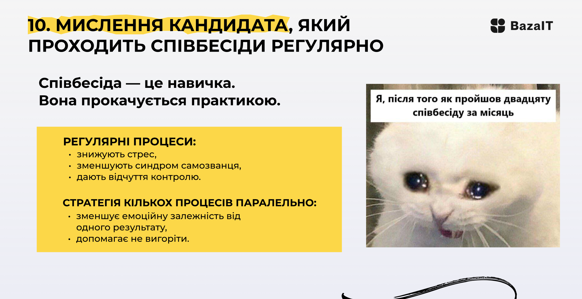 BazaIT разом із Hillel IT School провели практичний вебінар для тих, хто тільки починає карʼєру або змінює напрям і хвилюється перед співбесідами.