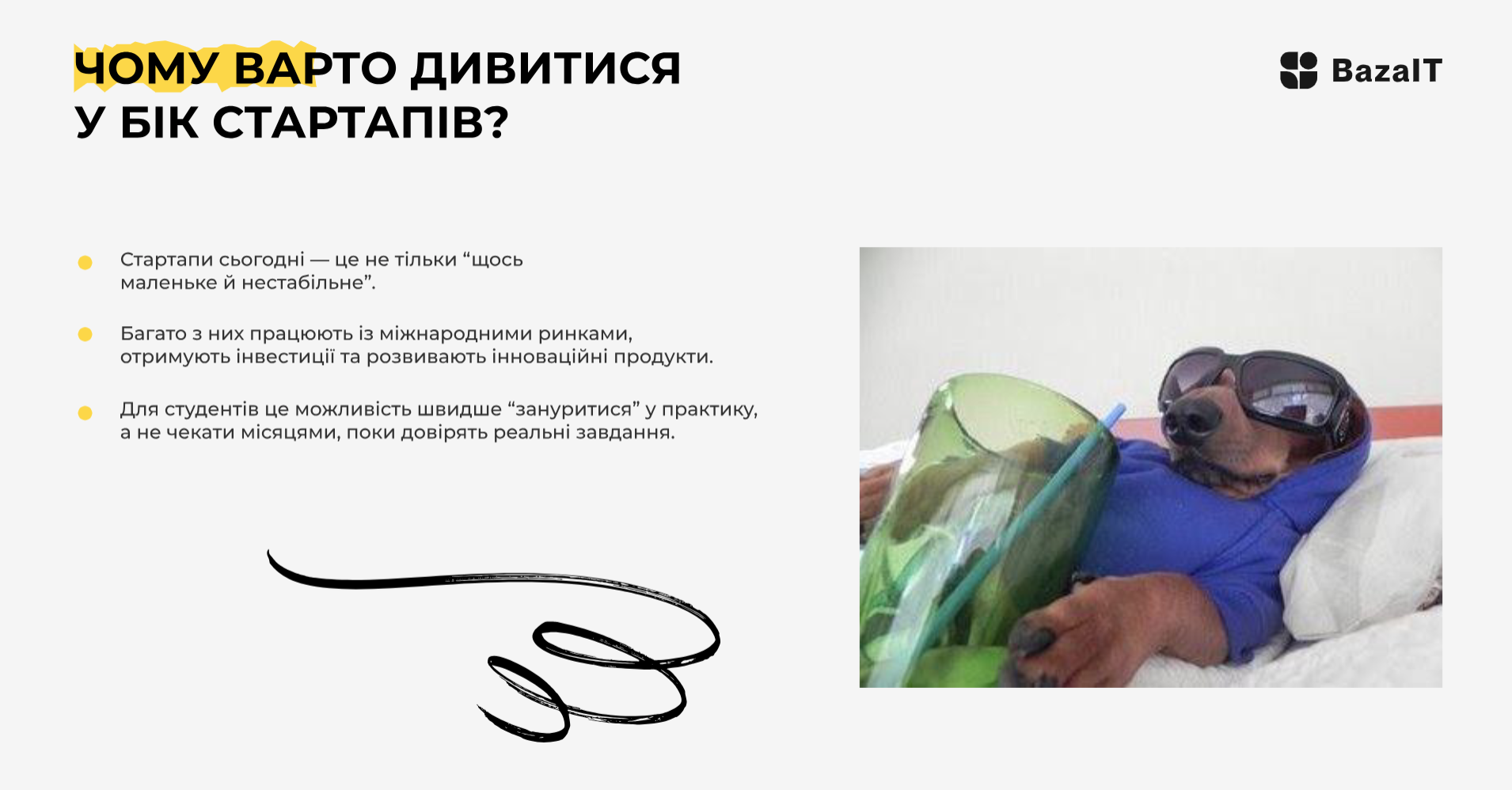 - швидкий вихід на ринок через роботу в стартапах, де можна отримати справжню практику з першого дня.