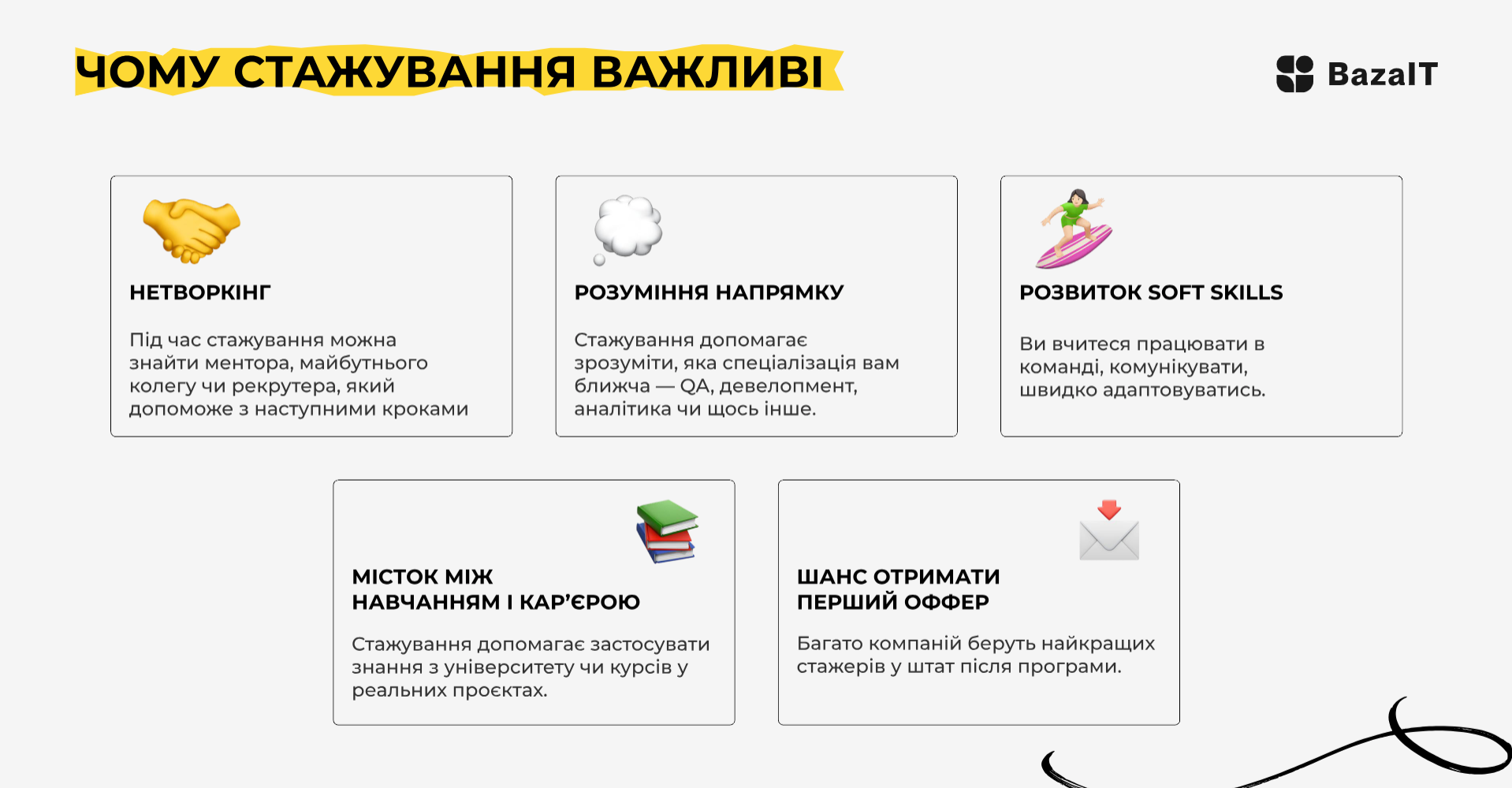 Стажування — це не формальність, а перший крок у професію. Переваги:
